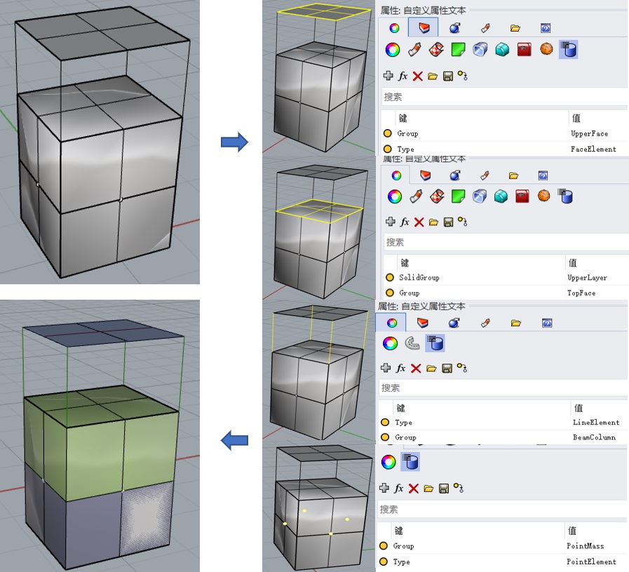 3. 网格的用户属性文本添加“SolidGroup”属性并设置其值即可实现对实体单元组的命名;
