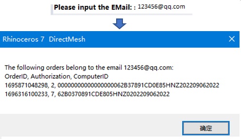 命令显示所输入E-Mail地址所绑定的全部许可证。