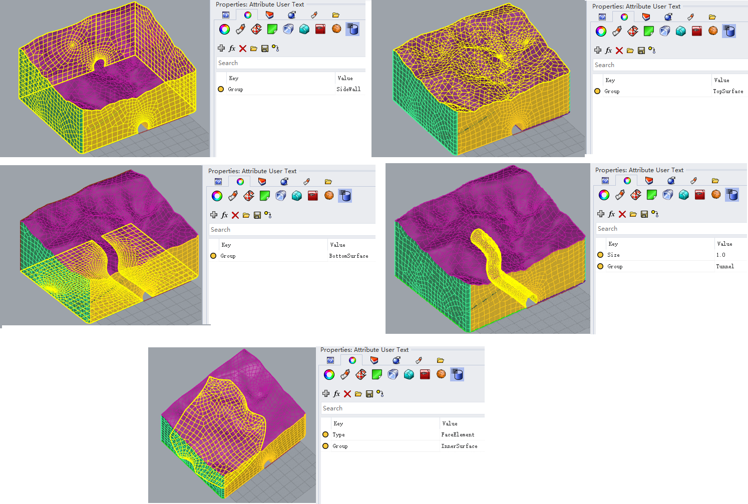 12. Set the groups and types of the meshes (the corresponding mesh model is DExample2.3dm).
