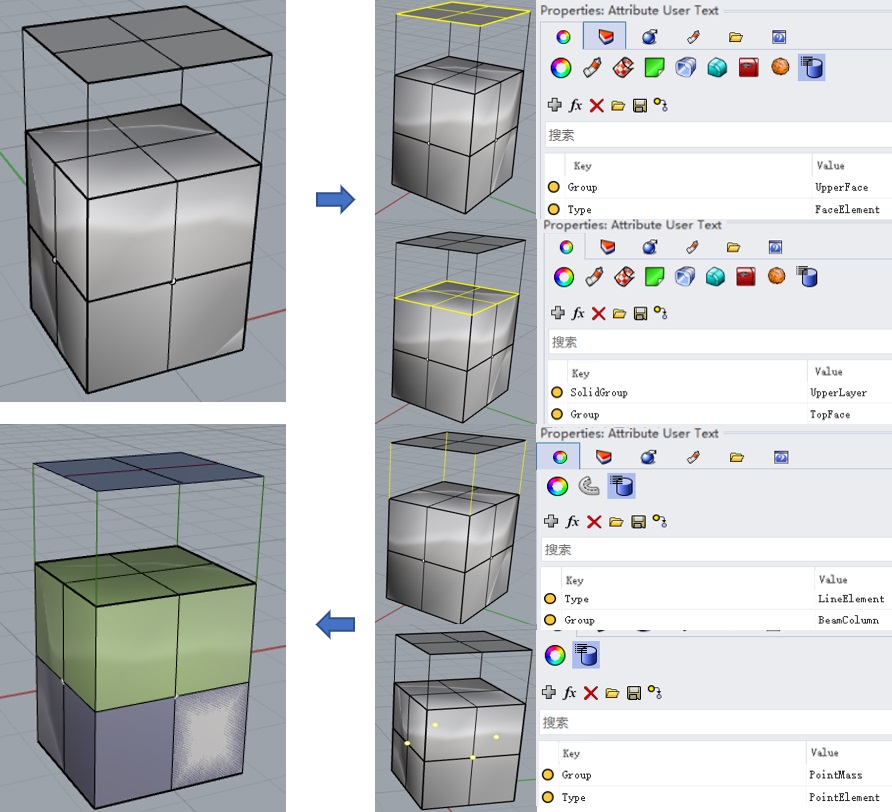 2. Adding the "Group" attribute and setting its value to the user attribute text of points, polylines, or mesh faces enables grouping;