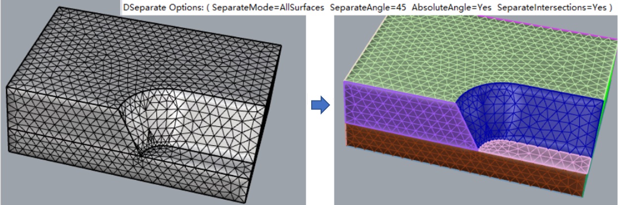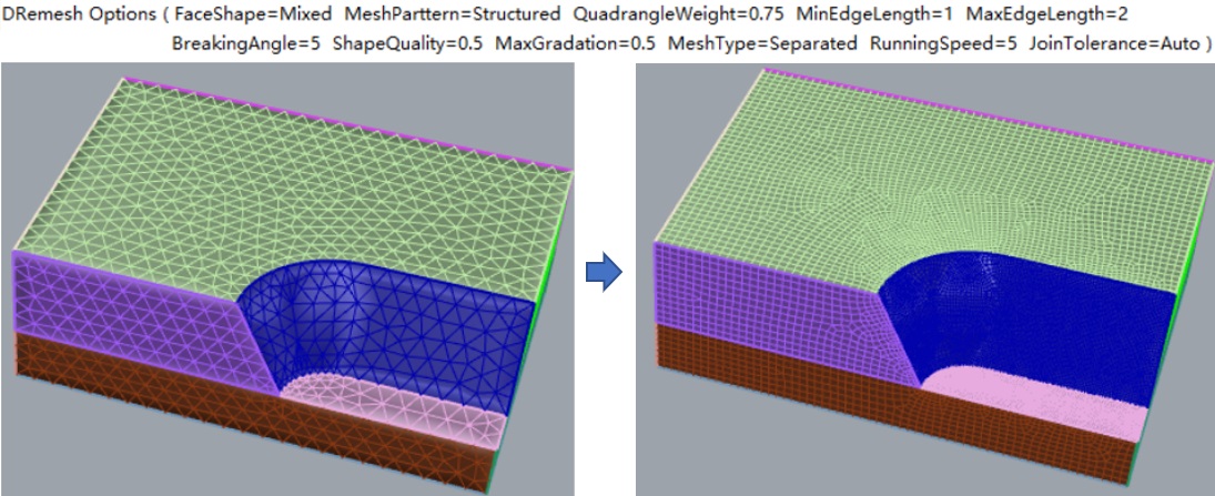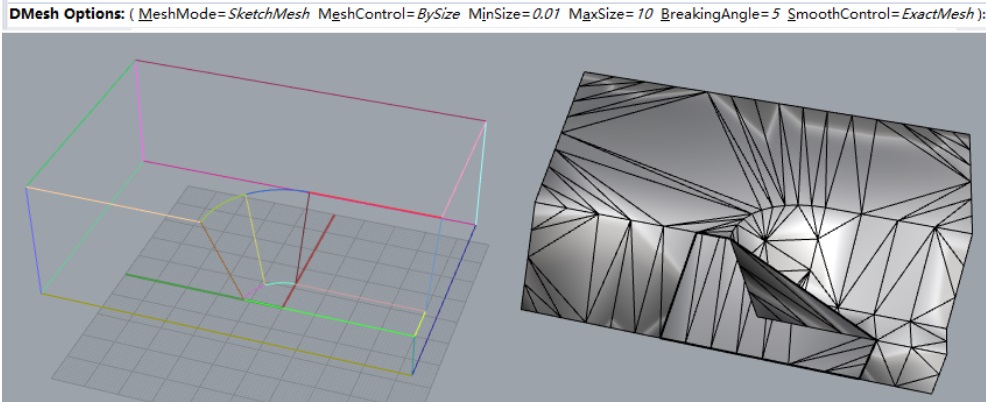 6. Use the DRemesh command to remesh these meshes again (command parameters as shown below, the result after this step: DExample1-After.3dm).