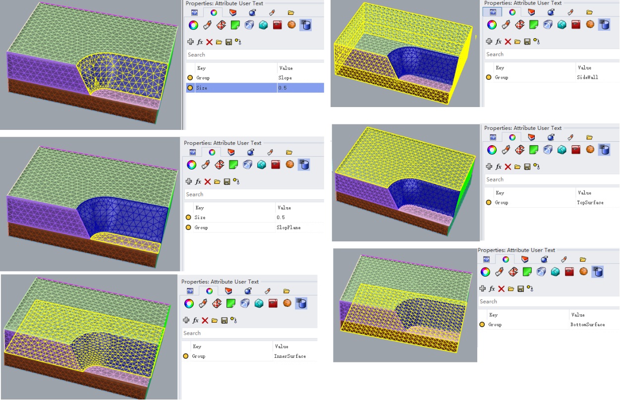 5. Set group information and mesh size for each mesh (as shown below).